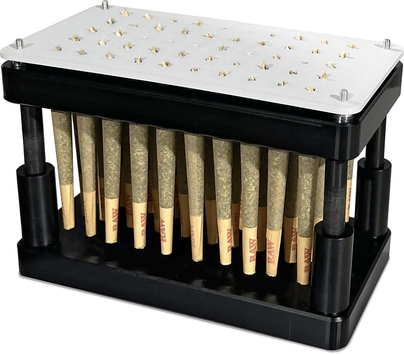 Our new joint infusion solution secures 50 pre-packed rolls in place. The Vape-Jet filling machine’s standard needle is swapped out for a sharp stainless-steel needle which pierces and injects oil into each joint using the same machine vision technology deployed during cartridge filling.